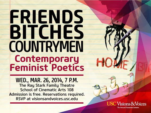 The reading and performance will be moderated by Sarah Vap, a PhD student in literature and creative writing at USC, and followed by a discussion facilitated by USC English professor Susan McCabe.